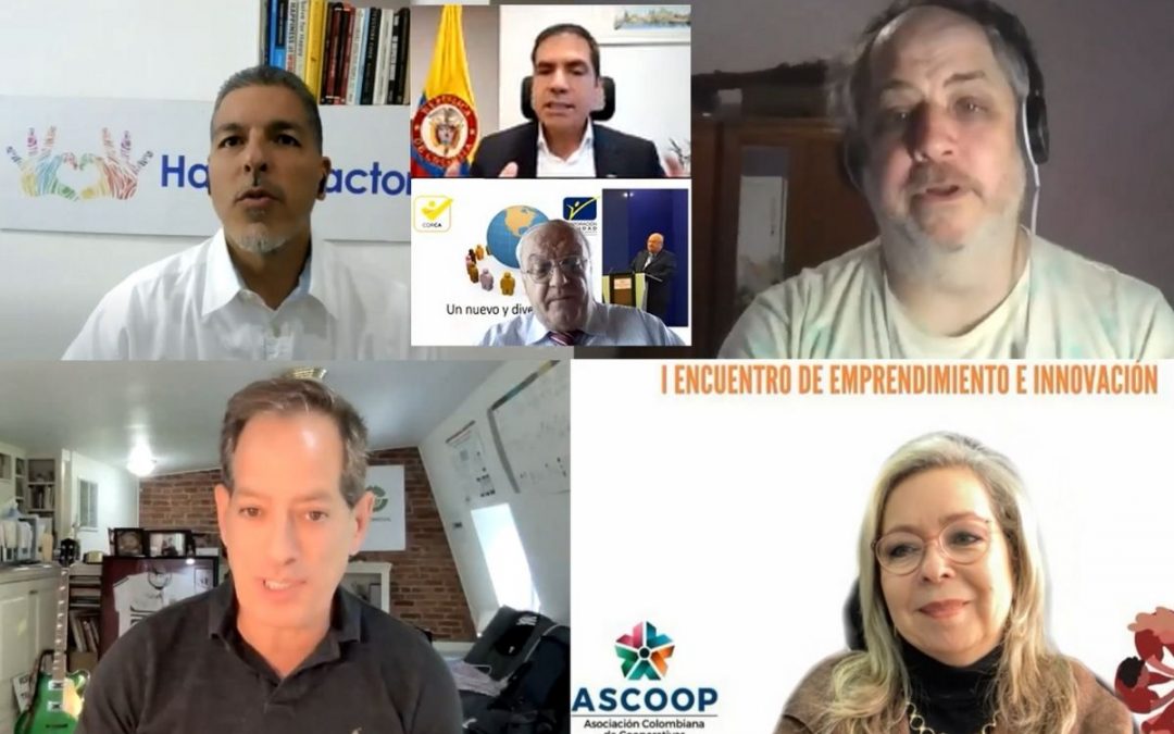 El encuentro virtual tuvo como conferencistas Fernando Enrique Plata (presidente de Happy Factor), Rafael Antonio González (director nacional de la UAEOS), Andrew Mack (presidente de Globaltech Bride), Leandro Monk, (fundador de la cooperativa Gcoop), Luis Miguel Álvarez Venegas (jefe nacional de desarrollo empresarial de la Fundación Coomeva) y a Mario Salazar (presidente de la Corporación Calidad).
